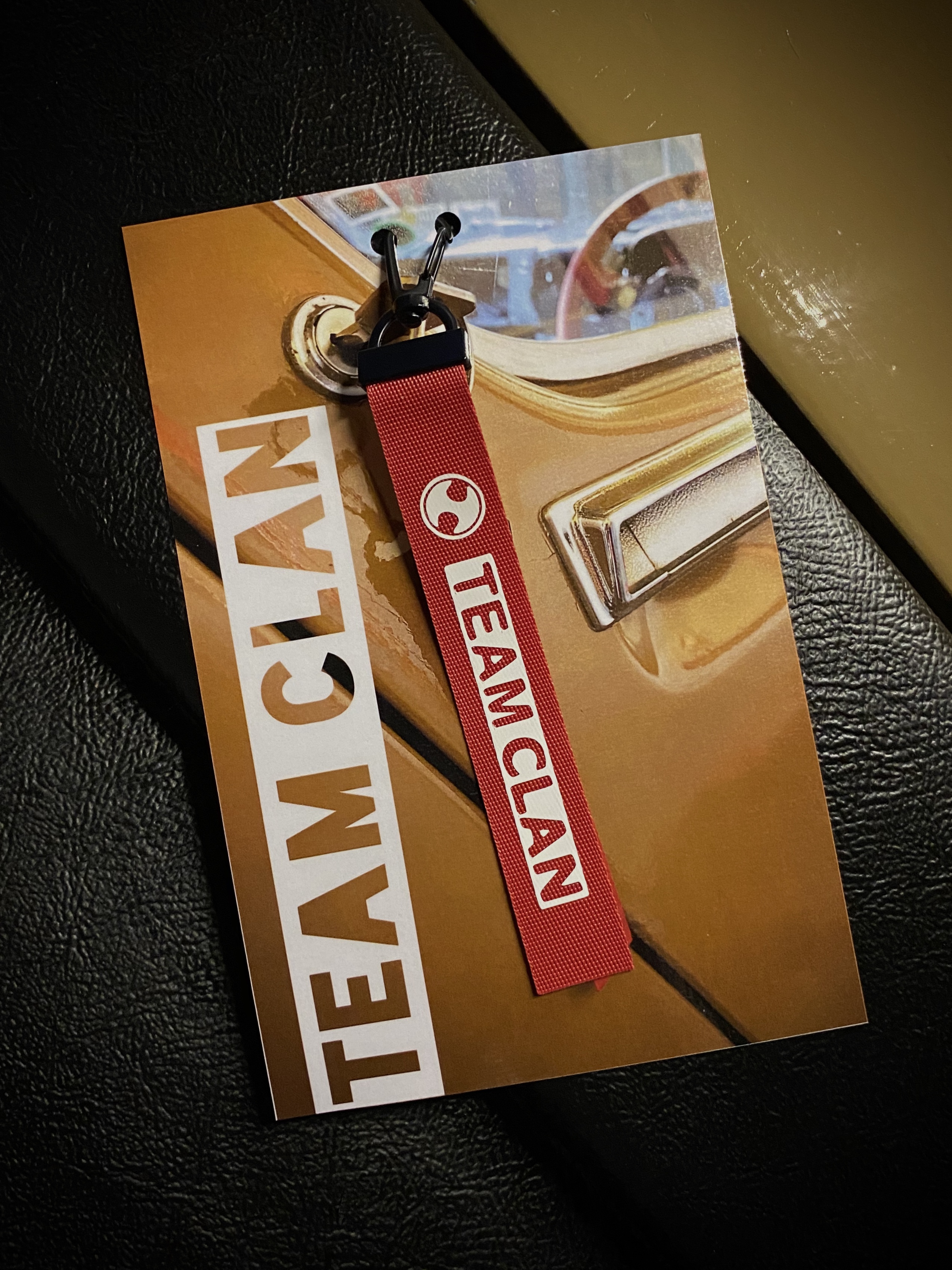 Get ready to race with this distinctive key tag, presented on a gift card featuring the brown Clan.